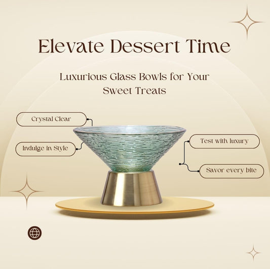 Hi-Lux Premium Green Glass Dessert Bowl Set β 6 Bowls with 6 golden Spoons
