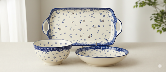 Decopride 10pc ceramic service set with Blue Floral Print Serving Plates