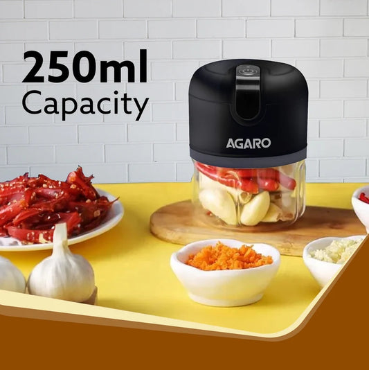 Agaro Elite Rechargeable Mini Electric Chopper, 250 Ml, Black
