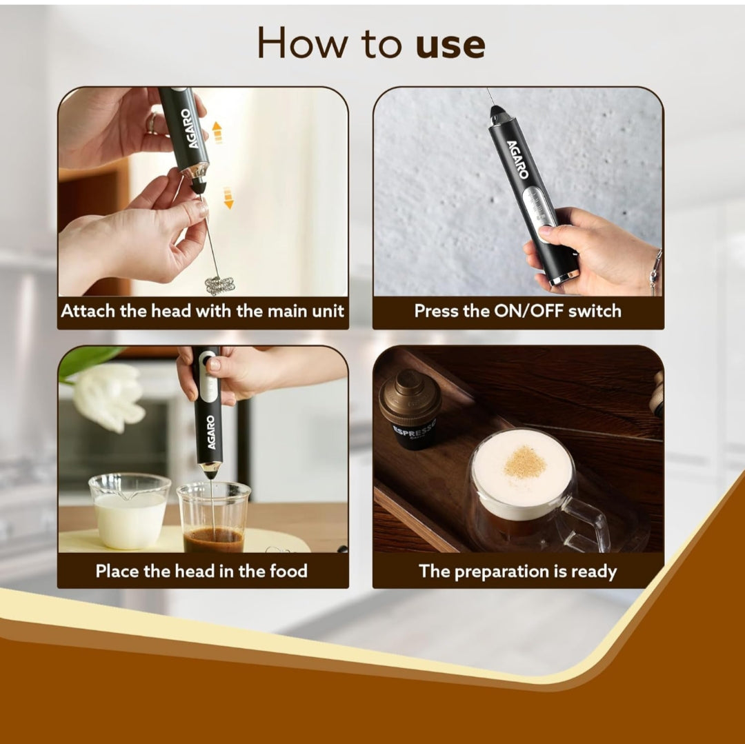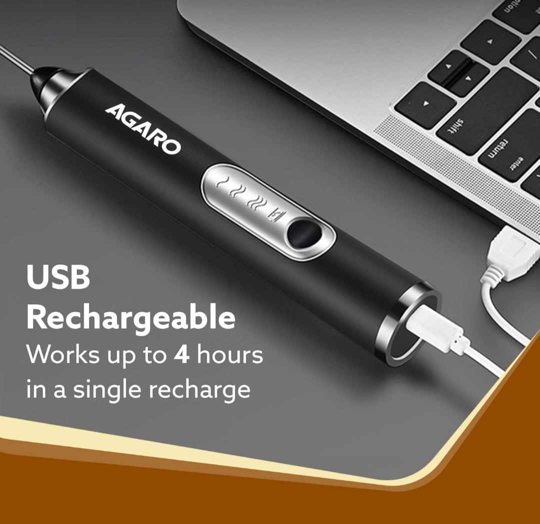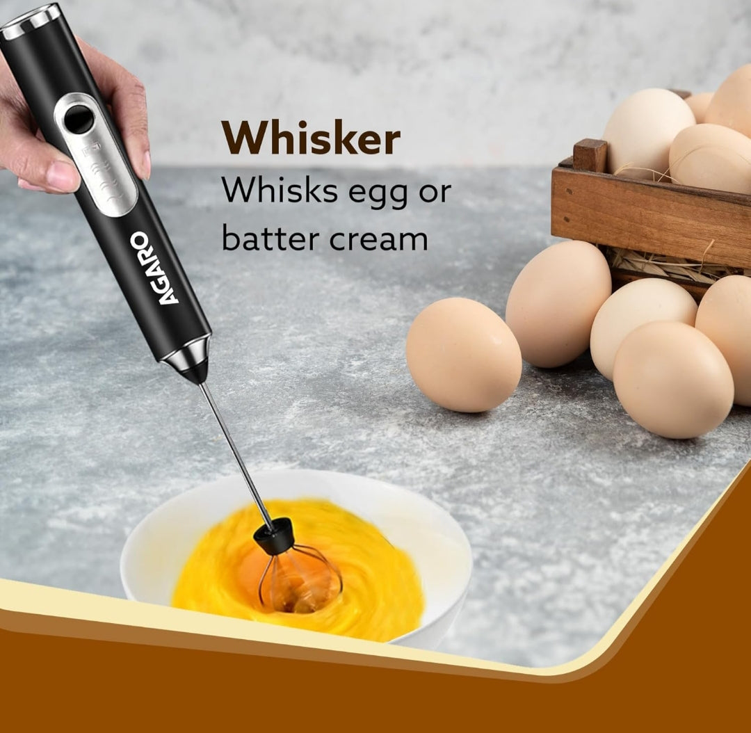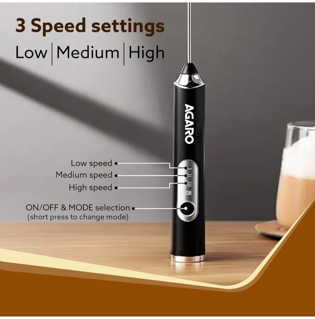 AGARO Royal Milk Frother, 3-Speed with Whisk and Frother, Rechargeable.