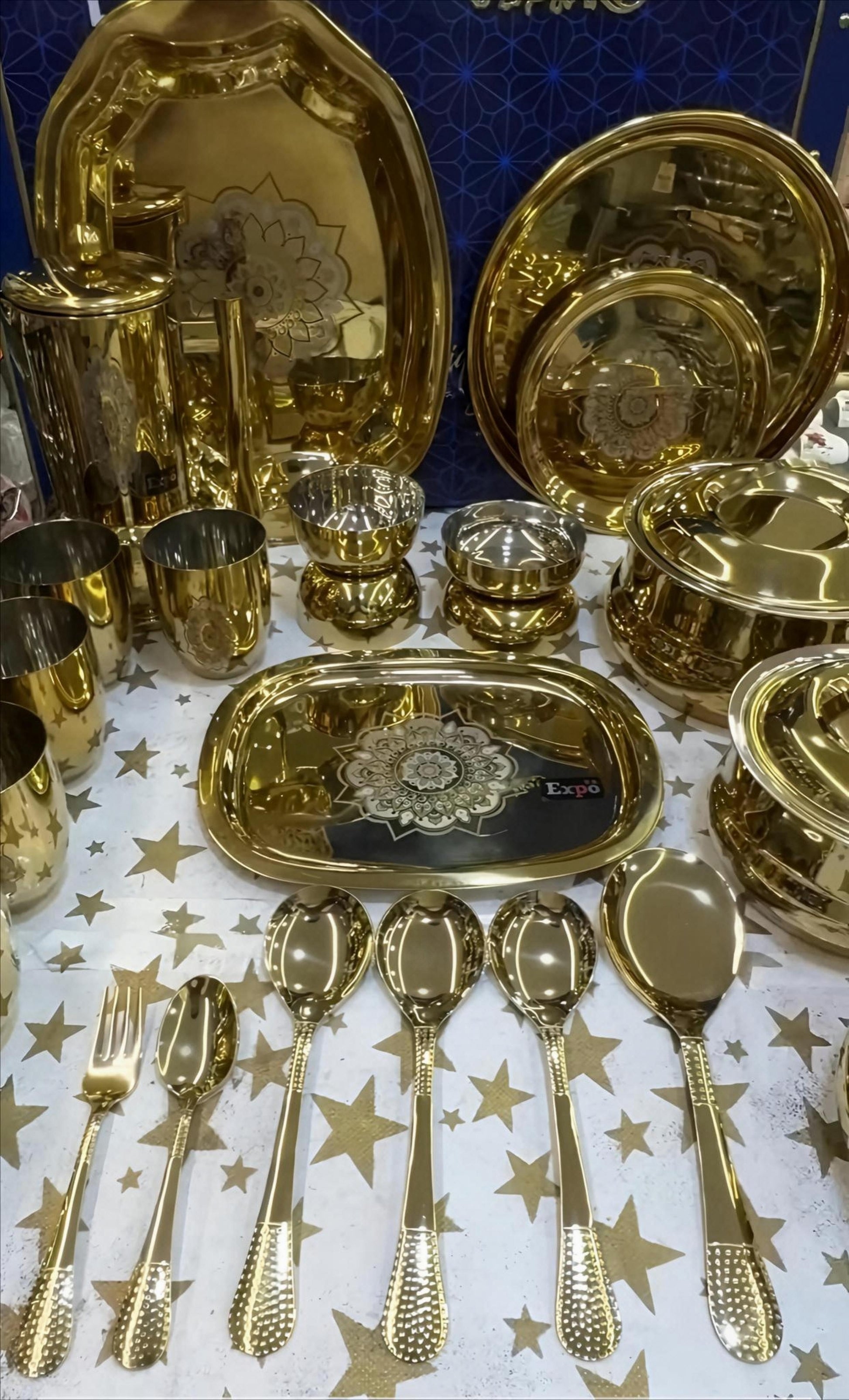 Expo 64pc PVD gold platted on stainless steel dinner set
