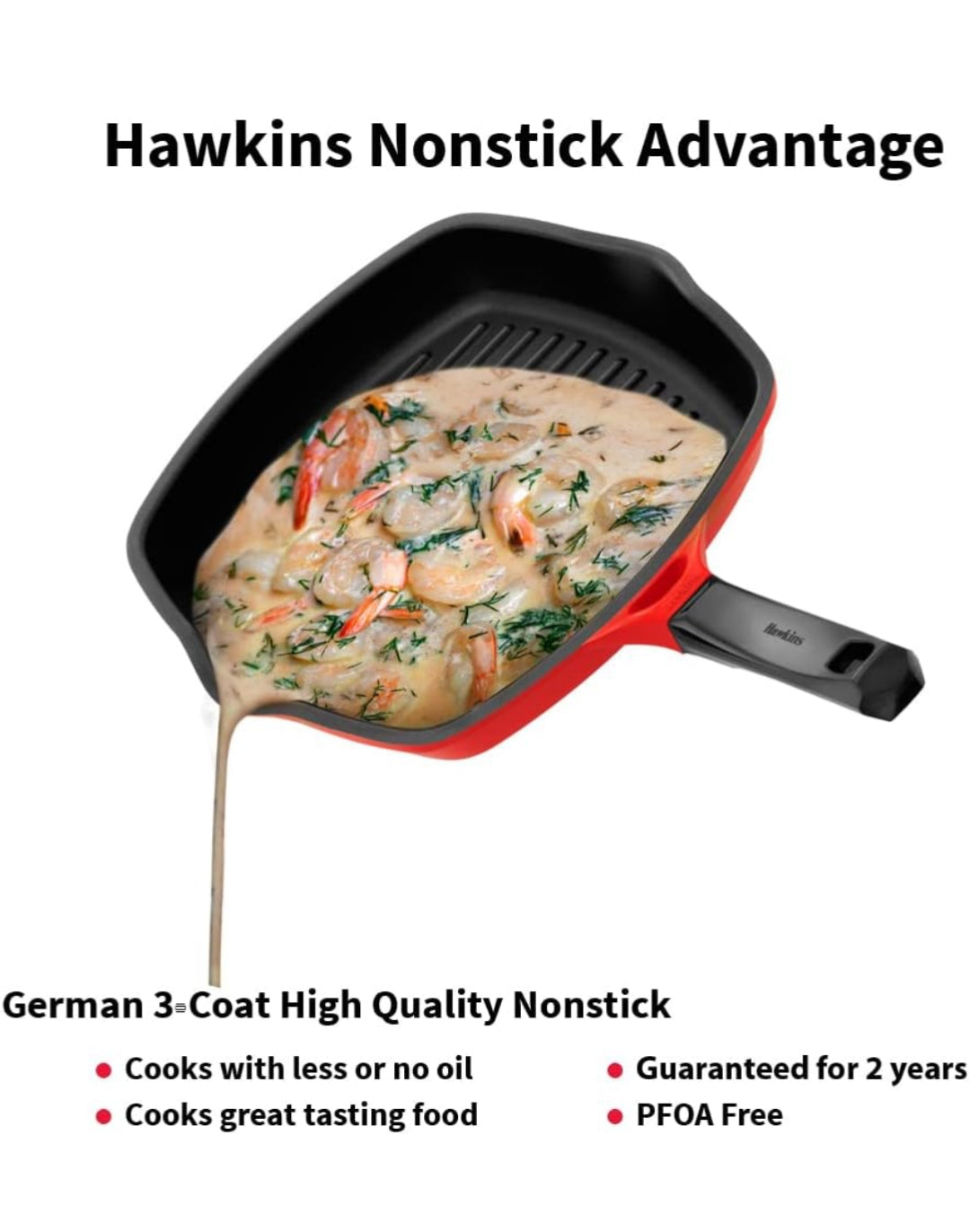 Hawkins 30 cm Square Grill Pan, Non Stick Die Cast Grilling Pan with Glass Lid, Gas Stove, Roast Pan