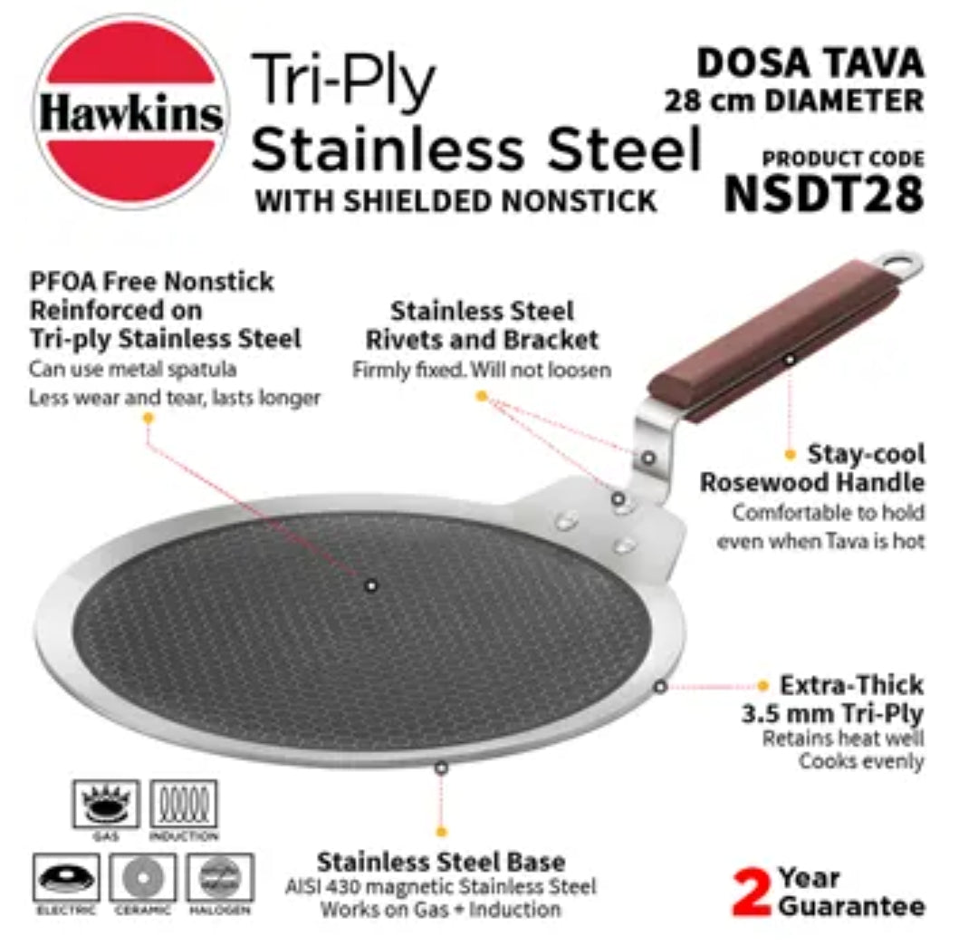Hawkins Tri-ply Dosa Tava with Shielded Nonstick 28 cm (NSDT28)