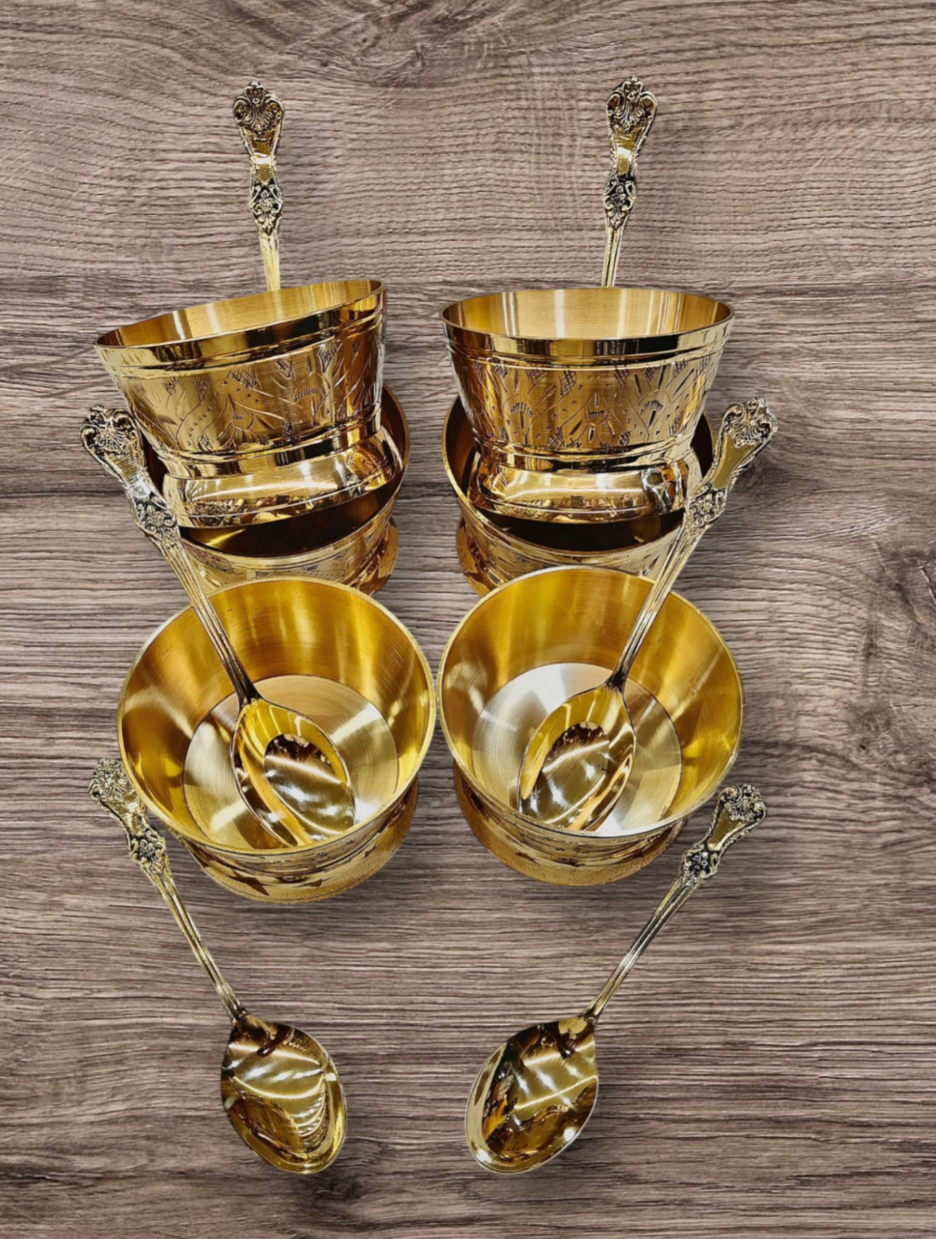 Heritage Brass Dessert Ice Cream Cup bowl set (6bowl + 6spoon)