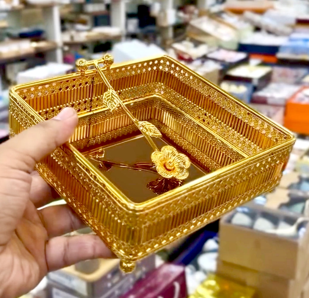 Napkin/Tissue holder Golden and Silver Coated with glass base.
