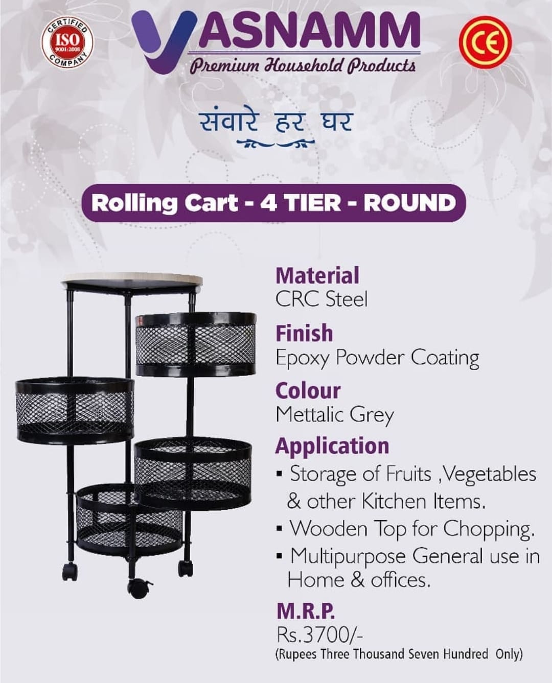 Vasnam rolling trolly 4 tier
