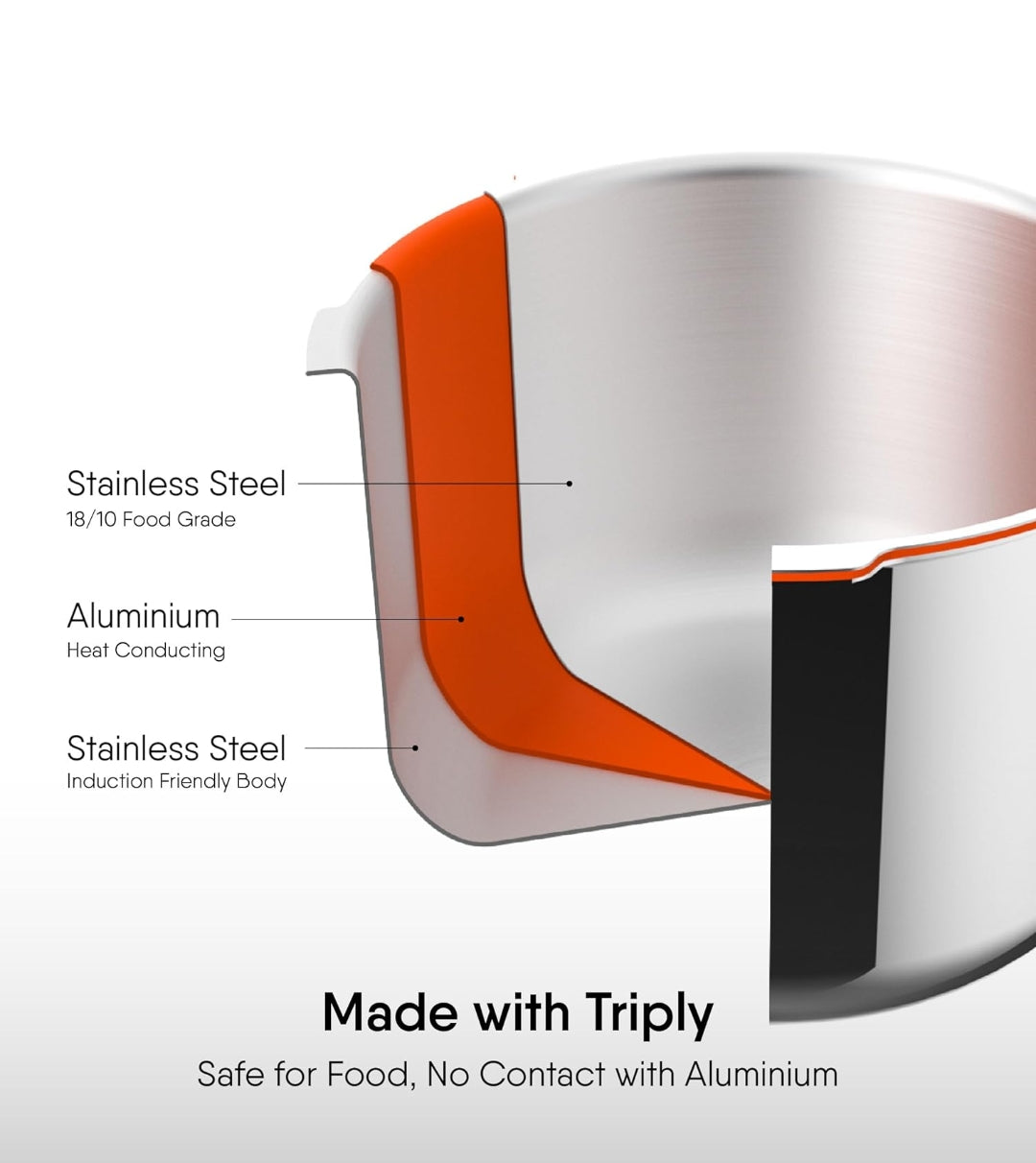 - TRIPLY: Made of the safest and most durable triply stainless steel.