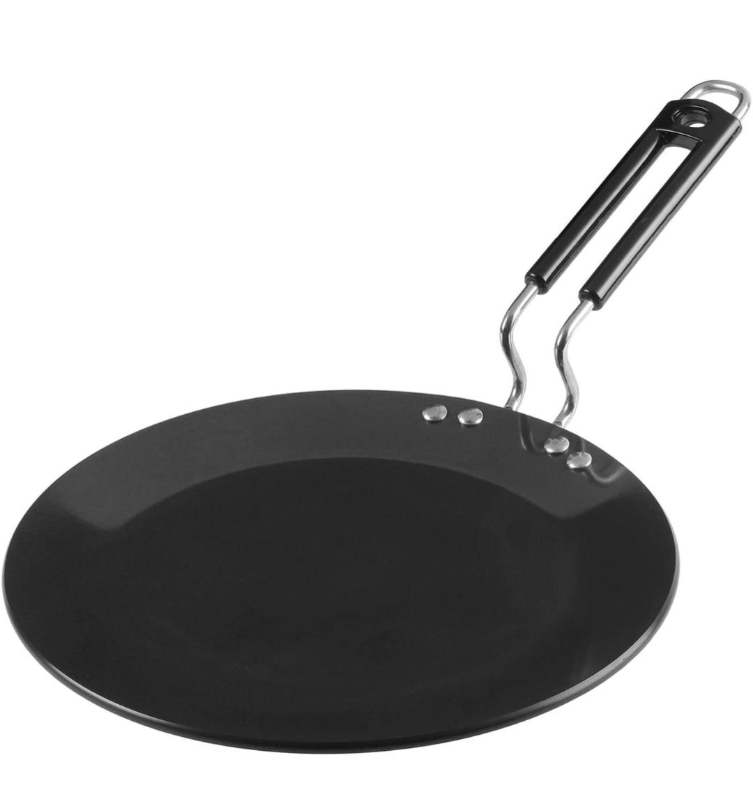 - STURDY RIVETED HANDLE - The riveted handle is ergonomically designed to provide a secure grip, ensuring comfort and safety while cooking. Its sturdy construction adds to the durability of the tawa.