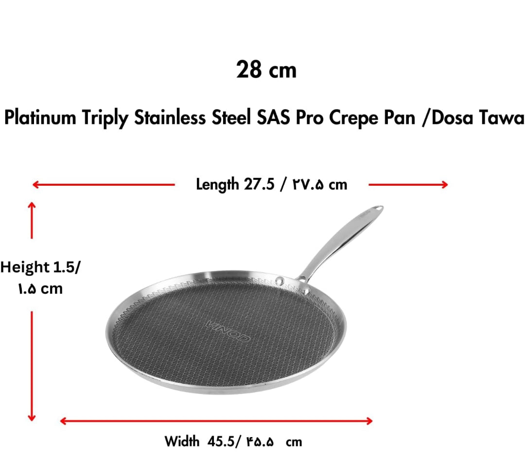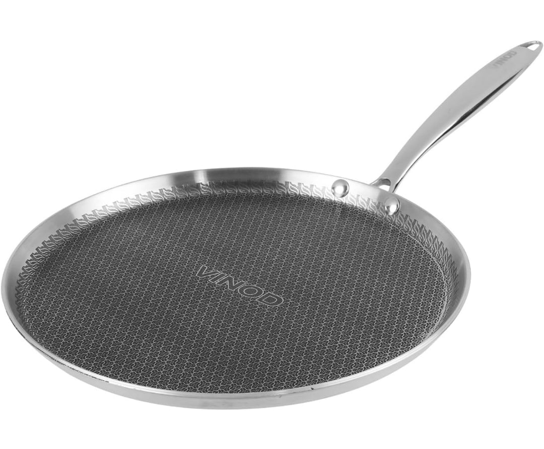 Vinod SAS Pro Platinum Triply Dosa Tawa - 4.0 mm Thick | Hexa Design | Gas, Induction Base | 5-Year Warranty